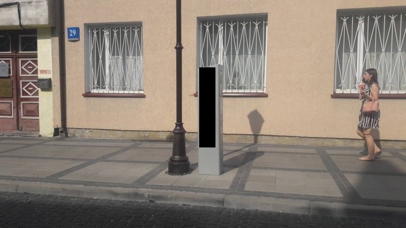 Лучанин Дмитро Василенко зазначає, що напис на паркоматі, який перебуває на балансі КП «Автопарксервіс», знаходиться там вже декілька тижнів. Його не бачить, ані міська влада, ані муніципальна варта.