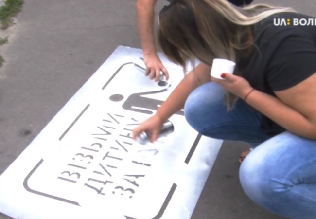Попереджувальні малюнки для пішоходів нанесли і біля переходу до дитячого садочка №18 у Луцьку.
