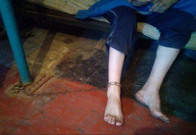 Матір посадила на ланцюг дорослого сина заради пенсії. ФОТО