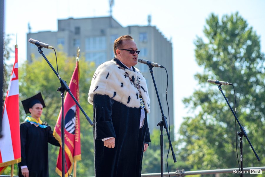 Привітати студентів прийшов також тимчасовий виконувач обов’язків голови Волинської обласної державної адміністрації Олександр Киричук. Посадовець говорив багато про патріотизм та обов’язки студентів, зокрема зазначив, що вони повинні відповідати званню студента і з честю посісти власну нішу у суспільстві.