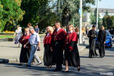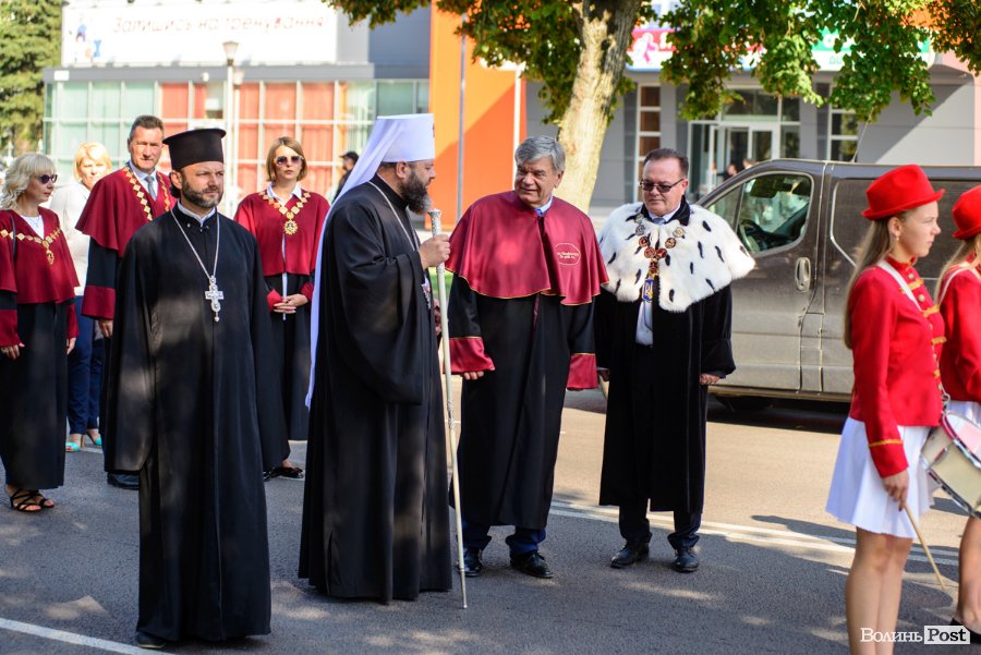 Спершу більше тисячі новобранців у мантіях зібралися біля головного корпусу своєї майбутньої альма – матер на духовне освячення від митрополита Луцького і Волинського Михаїла. Священник привітав студентів і звернувся до першокурсників, як до «шановних президентів», аби нагадати про їхню відповідальність перед майбутнім та обов’язок – бути гідними звання «студент».
