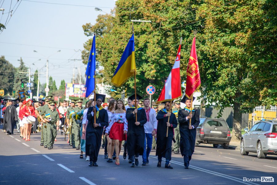 Опісля першокурсники пройшлися урочистим маршем від головного корпусу СНУ до спорткомплексу. Супроводжував їх військовий оркестр Луцького прикордонного загону.