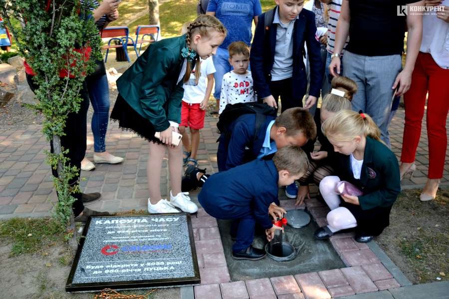У Луцьку до Дня міста школярі заклали капсулу часу, щоб дістати її через 16 років. До акції долучилися учні різних шкіл міста, які написали листи та намалювали малюнки, яким вони бачать рідне місто у 2035 році.