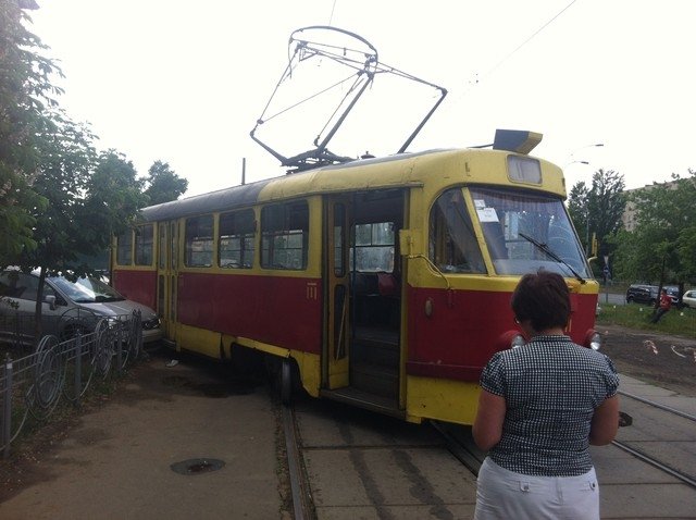 У Києві на Оболоні на вулиці маршала Малиновського зійшов з рейок 11-й трамвай.