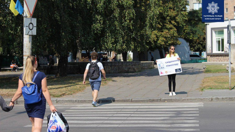 Патрульні поліцейські разом з волонтерами з Волинської обласної бібліотеки для юнацтва та СНУ імені Лесі Українки влаштували акцію для пішоходів.