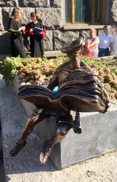 Біля головного корпусу СНУ імені Лесі Українки встановили мініатюрну скульптуру — кликуна Книжко.