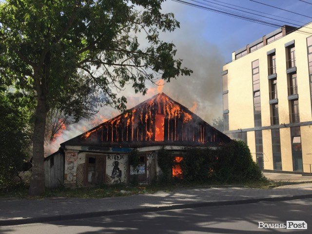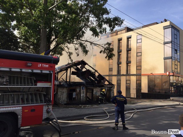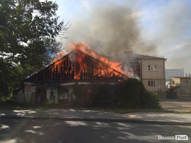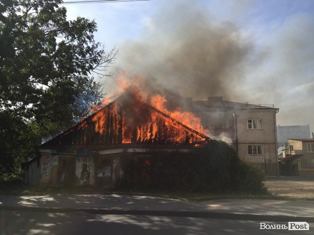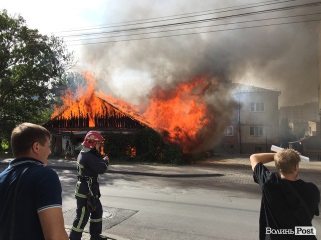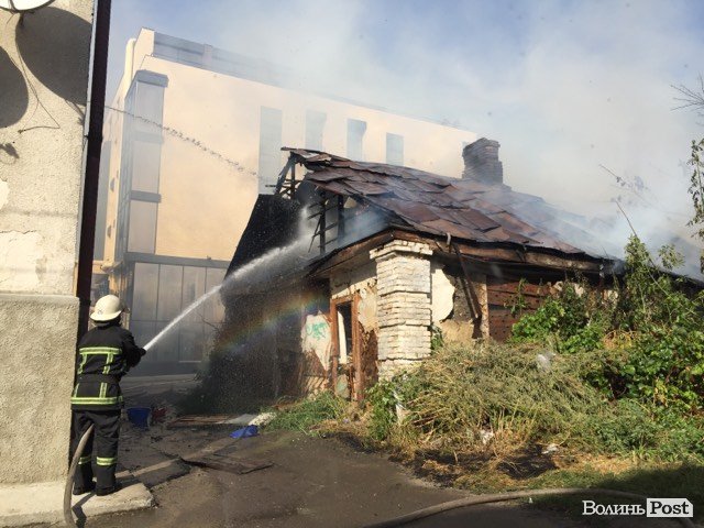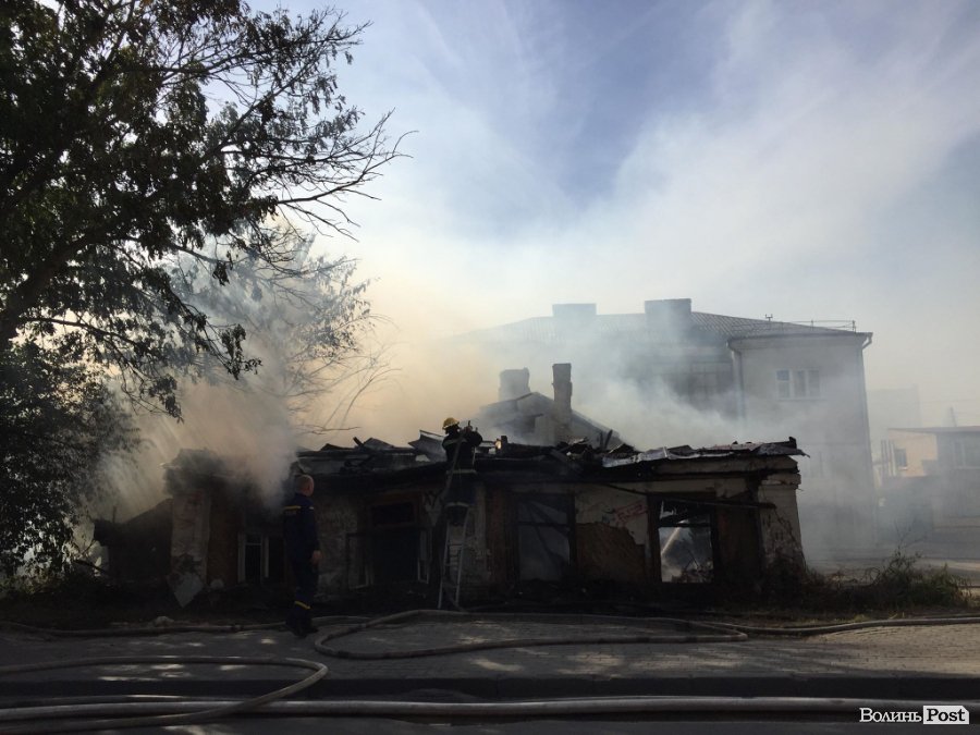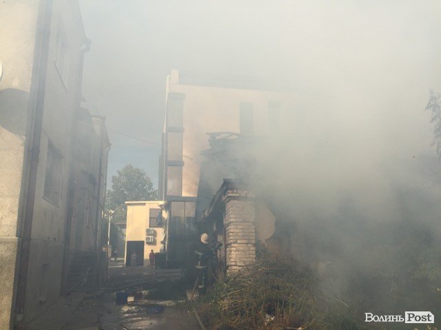 У Луцьку біля мерії горить будинок-розвалюха. ФОТО. ОНОВЛЮЄТЬСЯ
