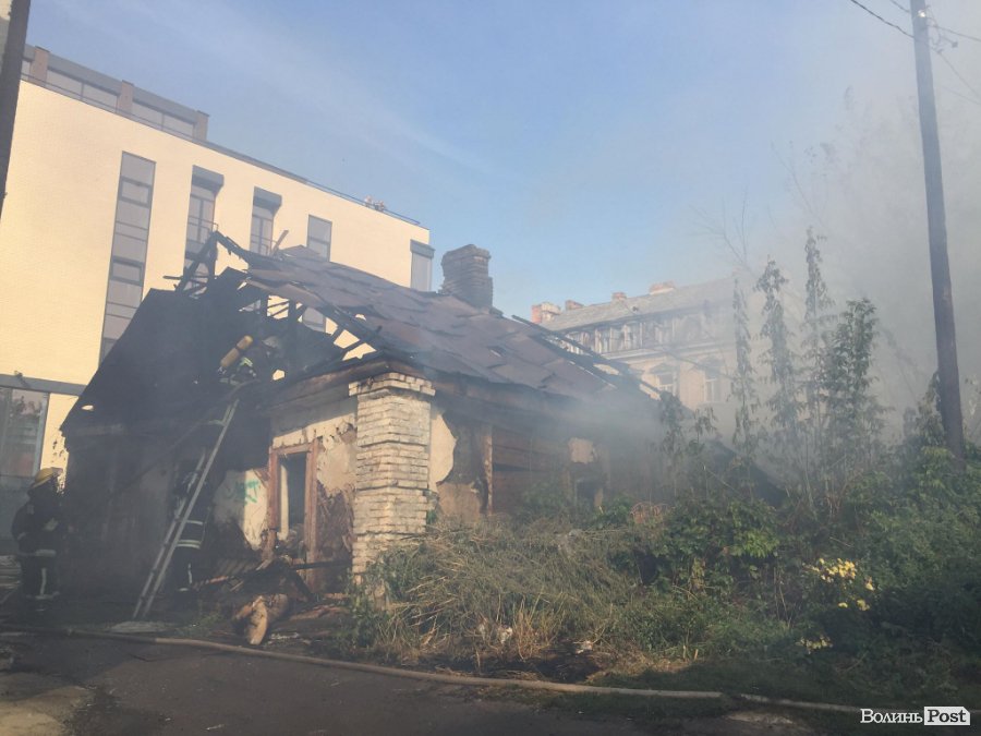 У Луцьку через пожежу на вулиці Богдана Хмельницького, 28а повністю згорів будинок-розвалюха і пошкодилась сусідня будівля.