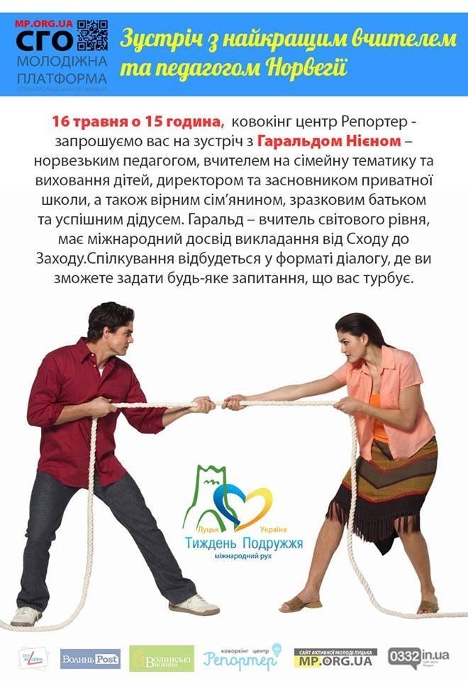 "Запрошуємо вас на зустріч з Гаральдом Нієном – норвезьким педагогом, вчителем на сімейну тематику та виховання дітей, директором та засновником приватної школи, а також вірним сім’янином, зразковим батьком та успішним дідусем. Гаральд – вчитель світового рівня, має міжнародний досвід викладання від Сходу до Заходу", - йдеться у повідомленні.