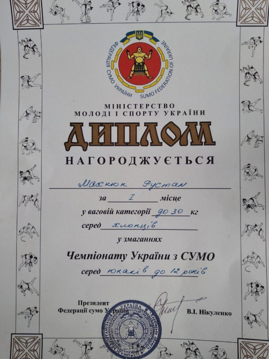 Учень Любомльської школи №2 Рустам Мохнюк виборов перше місце на чемпіонаті України з боротьби сумо серед юнаків до 12 років.
