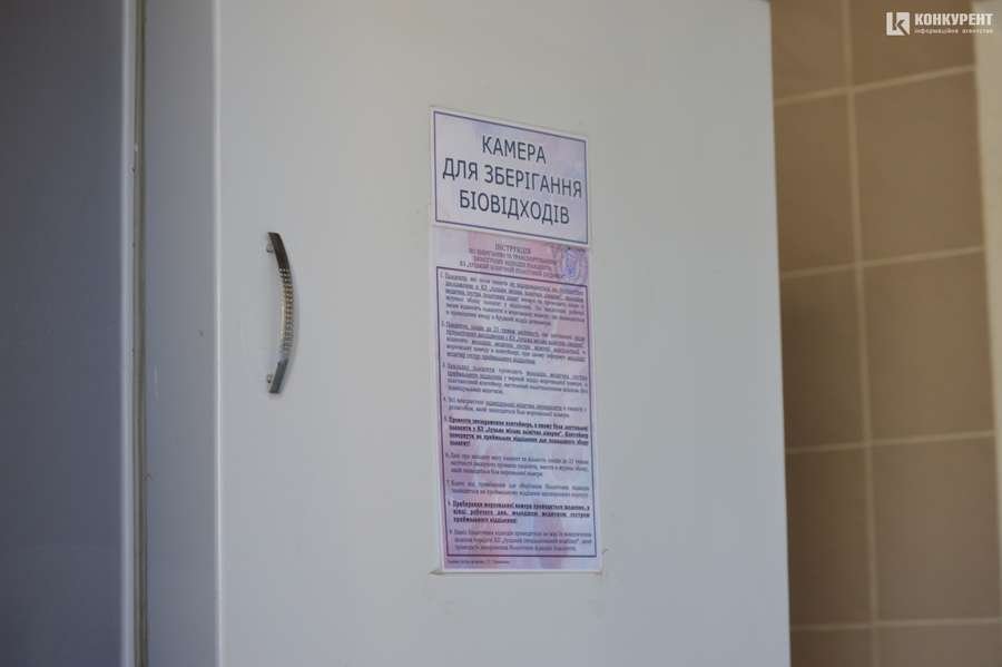 Нас проводять у господарські приміщення, які розташовані на території пологового. У великому цегляному будинку – кілька величезних металевих дверей червоного кольору. Одні з них нам відкриває охоронець. Плаценти – під замком. І ось воно – місце, де таки дійсно у морозильних камерах зберігаються кілька десятків кілограмів плацент. Якщо відверто, то це видовище – не для слабкодухих. Обидві камери для зберігання біовідходів заповнені наполовину. Коли наповняться, за ними приїде автомобіль із спецкомбінату.