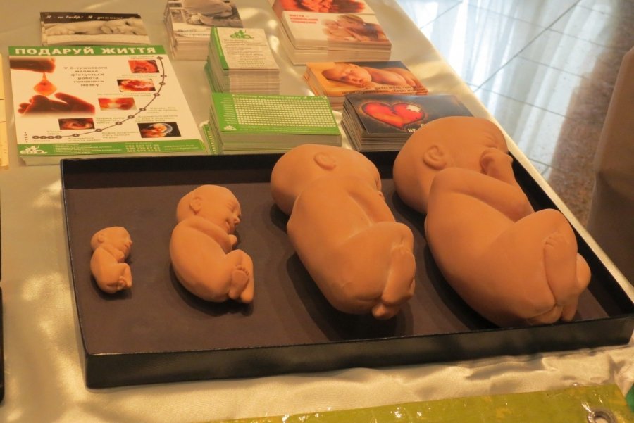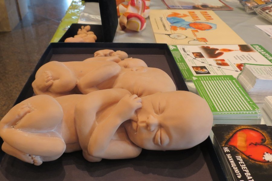 До слова, таким чином, організатори виставки демонстрували відвідувачам форуму етапи розвитку дитини в утробі матері та агітували проти абортів.