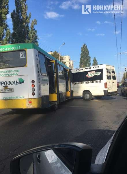 У Луцьку зіткнулися два автобуси: міська 31-ша маршрутка і автобус компанії пасажирських перевезень "Луцьк Експрес".