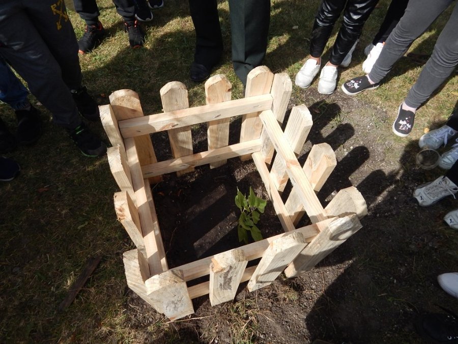 Перед тим, як видажувати саджанці, учням провели інструктаж, розповіли як правильно це зробити, щоб деревця прижились. Для рослин виділили спеціальні місця на озелененій території навчального закладу, опісля – обгородили дерев’яним парканчиком.