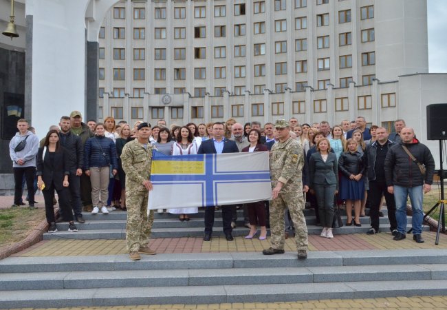 У Луцьку відбувся загальнообласний флешмоб з нагоди урочистого спускання прапора ВМС ЗС України, присвяченому підтримці подій визволення з полону українських моряків.