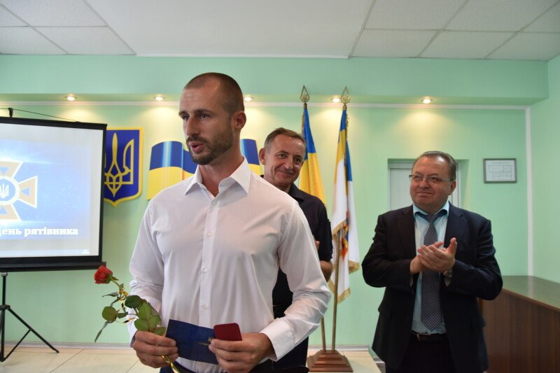 Також Григорій Пустовіт та Володимир Грушовінчук нагородили відзнакою рятувальника посту центрального пляжу Павла Суліменка, який 28 серпня цього року разом з небайдужим громадянином, врятував двох дівчат, які пішли купатися та почали тонути.