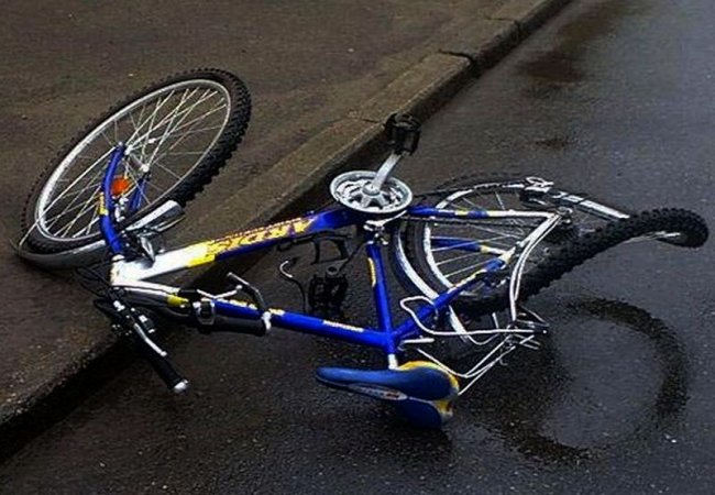 В автомобіля - сильно розбите лобове скло, поруч лежить понівечений велосипед. Очевидці кажуть, що постраждалого шпиталізували.