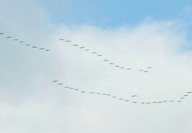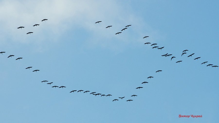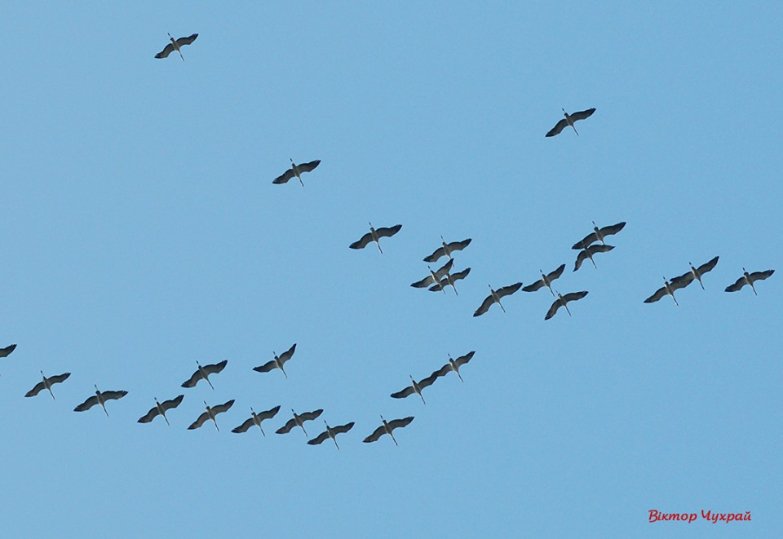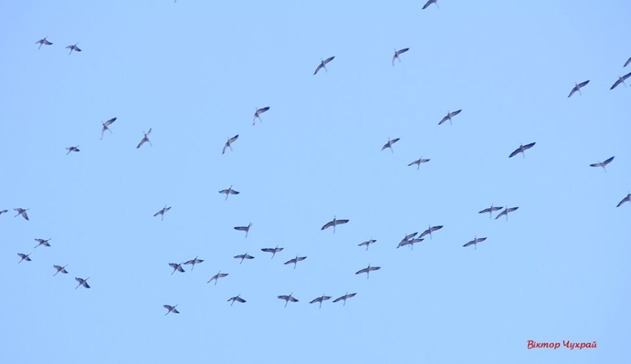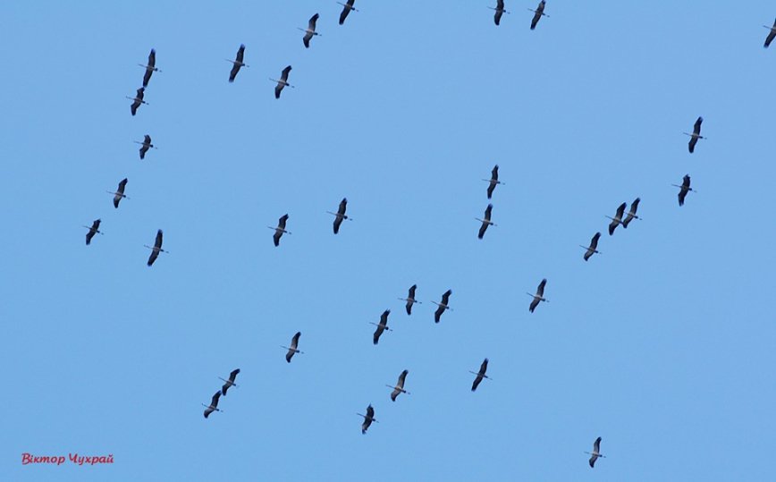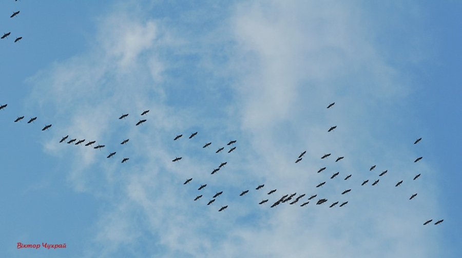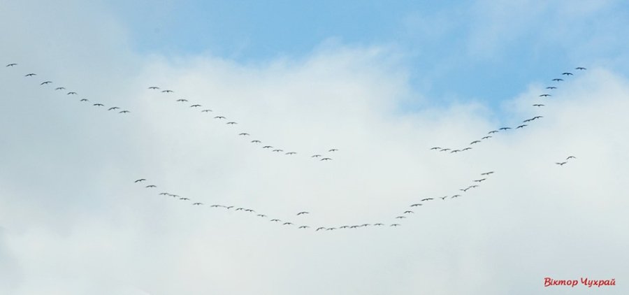 Відлітають журавлі: птахи у небі над Луцьком. ФОТО