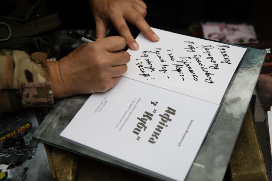 П’ятий президент України також відвідав ветеранський намет, де представлені книжки, авторами яких є військові, які боронили незалежність і територіальну цілісність України на сході держави.