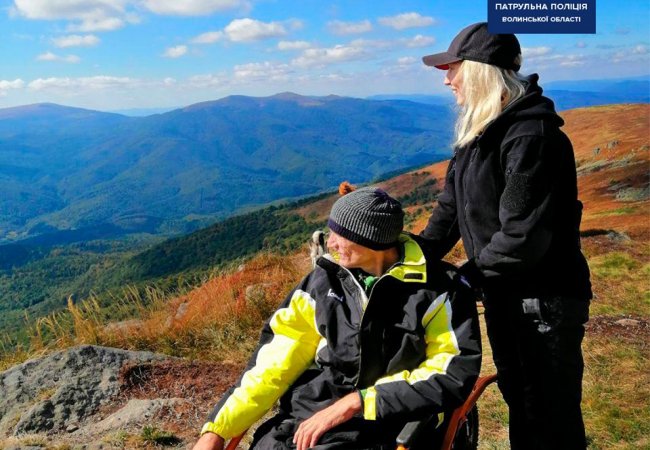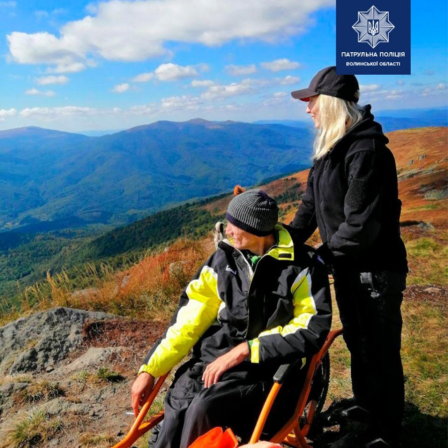 Луцькі патрульні допомогли підійнятись на вершину гори чоловіку з інвалідністю. ФОТО
