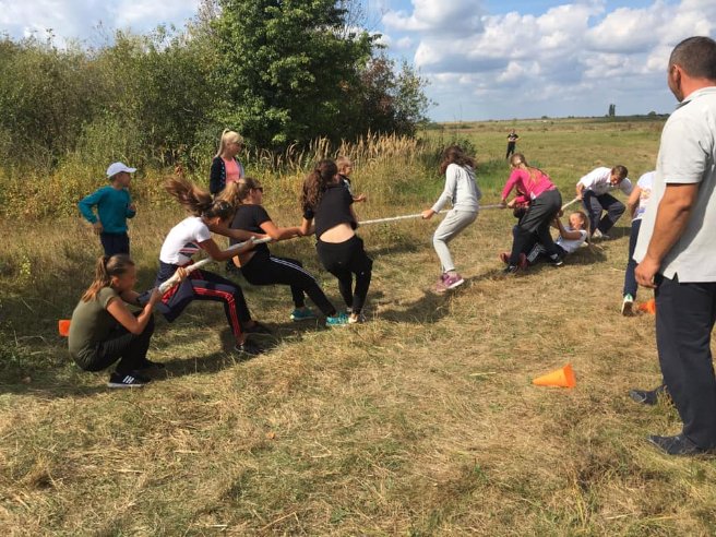Між 3-4 класами відбулися змагання «Веселі старти», учні старших класів перетягували канат. Перемогу здобули дівчата.