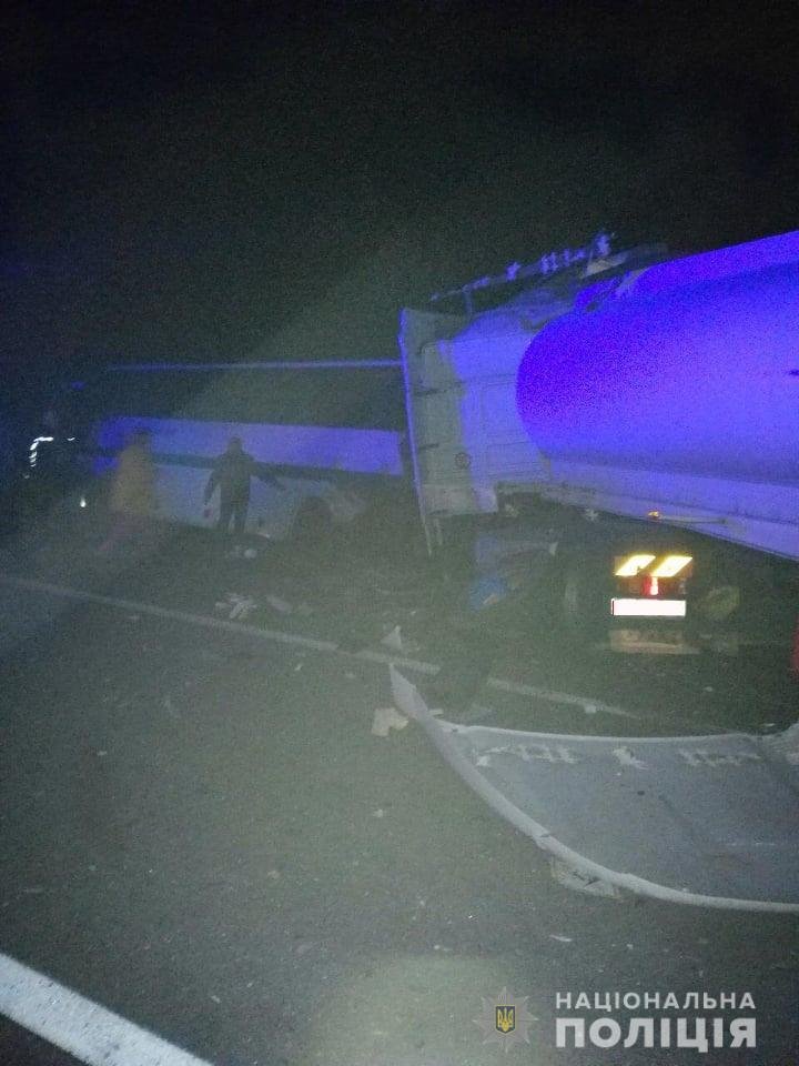Попередньо встановлено, що близько 22:30 на трасі Київ-Чоп, поблизу с. Великий Молодьків Новоград-Волинського району, 55-річний водій "DAF" з напівпричепом (цистерна), прямуючи у напрямку столиці, не впорався з керуванням та зіткнувся з автобусом сполученням "Житомир-Яремча", що стояв на узбіччі дороги.