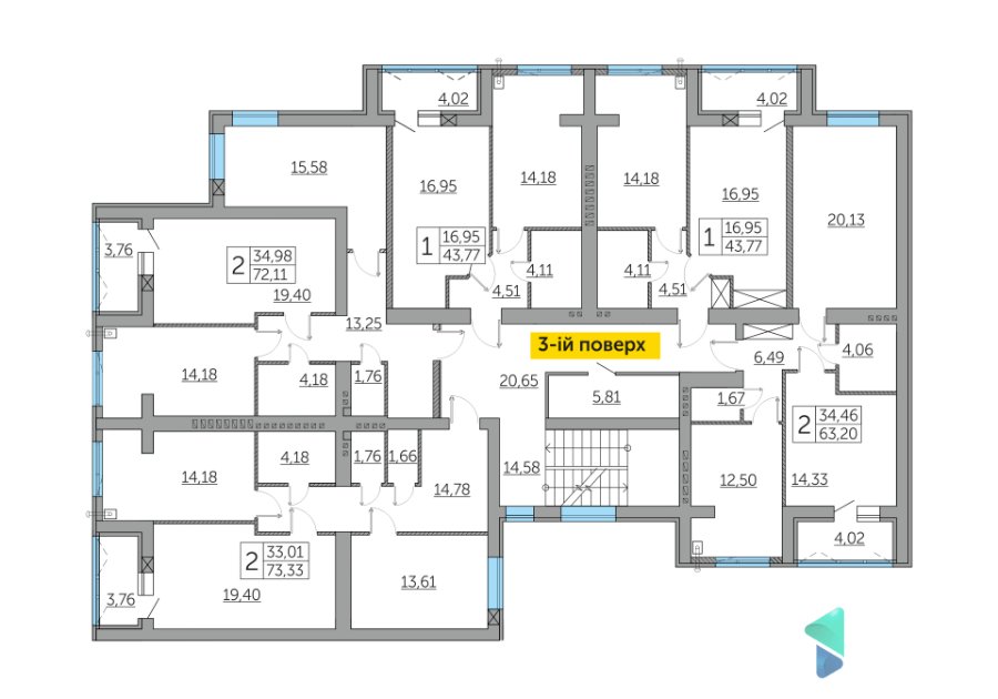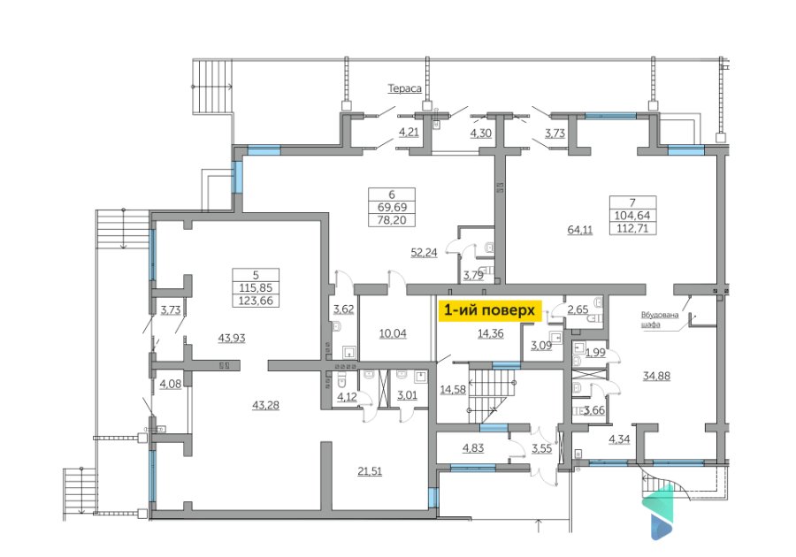 Приміром буде 1-кімнатна квартира площею 44 м². 2-кімнатна квартира – 64 м². Цікавою також є 2-кімнатна квартира на 73 м². Світла і простора, вона має усе необхідне – від гардеробної до теплої підлоги, від світлих кімнат до просторих кухні і санвузла.