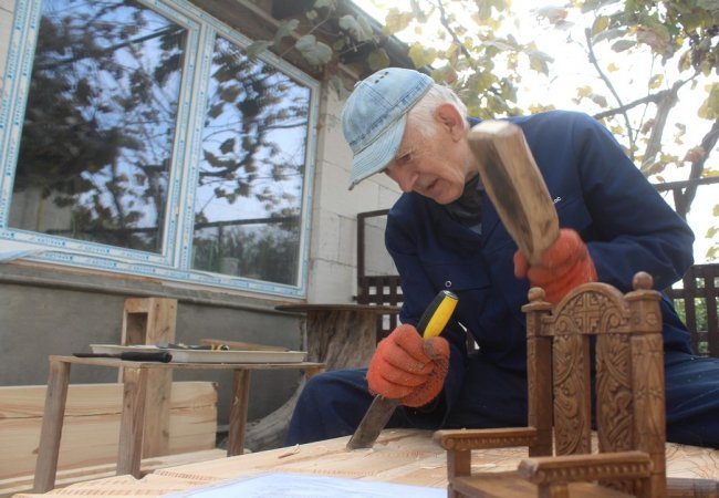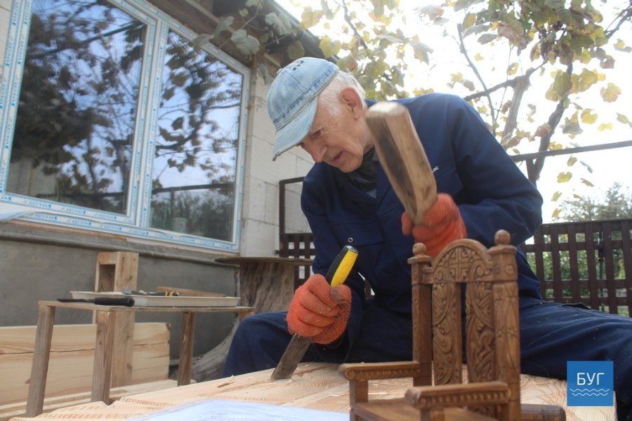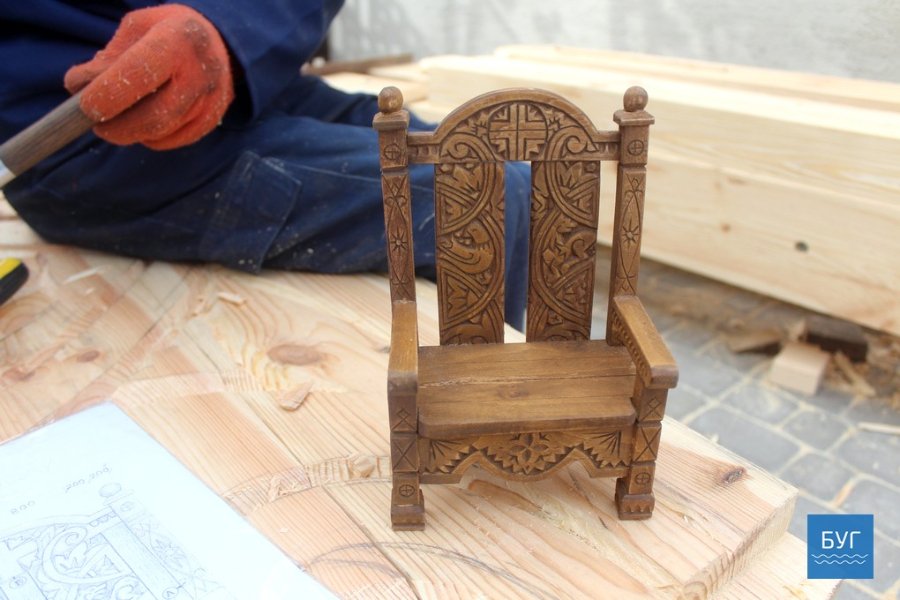 Працює Сергій не сам. Допомагає йому у роботі син. Як зазначає майстер, на подвір'ї власного будинку він підготує усі деталі трону окремо, а збиратимуть гіганта 27 вересня безпосередньо на території валів.