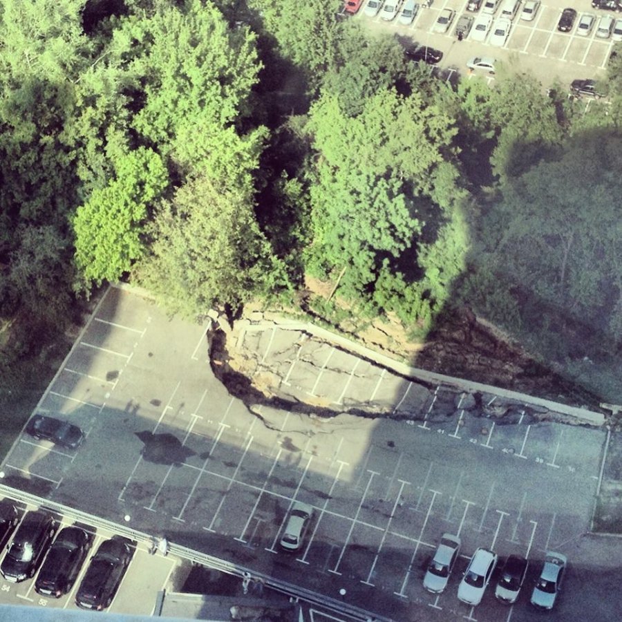 У Києві стався зсув ґрунту на парковці бізнес-центру біля Протасова Яру.