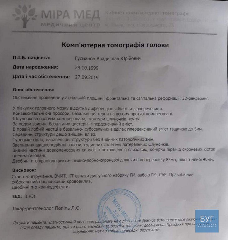 19-річний Гусманов Владислав, мешканець Володимира-Волинського, 23-го вересня у Львові отримав важкі тілесні ушкодження.