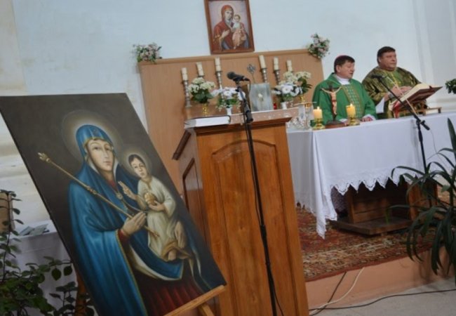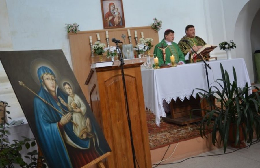 Під час богослужіння єпископ розповів історію чудотворного образу. Зокрема, що це є копія, оригінал пропав. А походить назва від того, що костел св. Казимира у Казимірці (сучасна назва – село Кузьмівка Сарненського району Рівненської області), збудований в 1629 р. великим канцлером литовським Альбрехтом Радзивіллом, славився образом Матері Божої Казимирецької. Він був копією образу в Олиці, привезеного Радзивіллами з Палестини. Образ був чудотворним, тож помолитися у Казимирку прибували католики і православні навіть з-поза Волині. Під час Другої світової війни у 1943 році Казимирку спалили, того ж року був знищений і костел. Доля того образу невідома. Владмика благословив іконками присутніх, і всі разом зачитали «Молитву до Пресвятої Богородиці Марії в чудотворній Казимирецькій іконі».