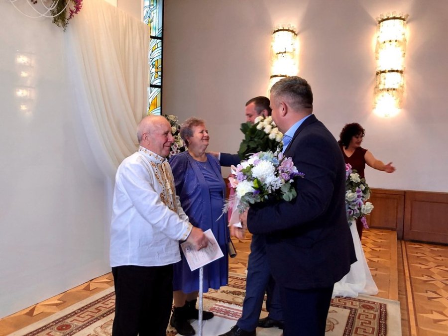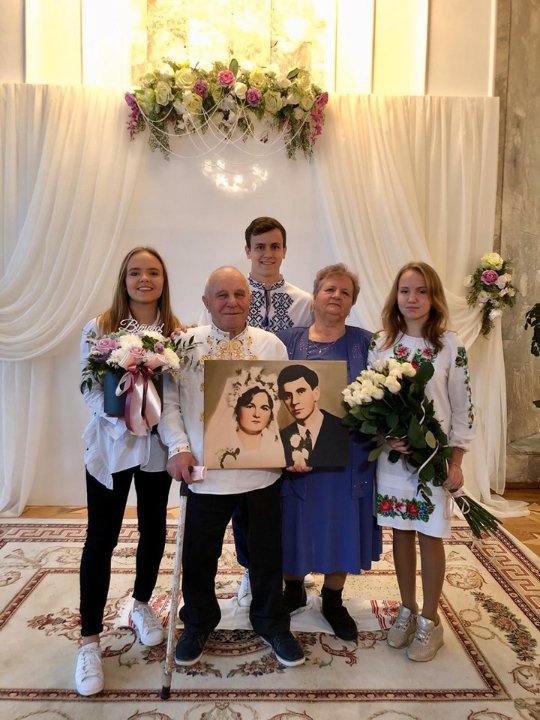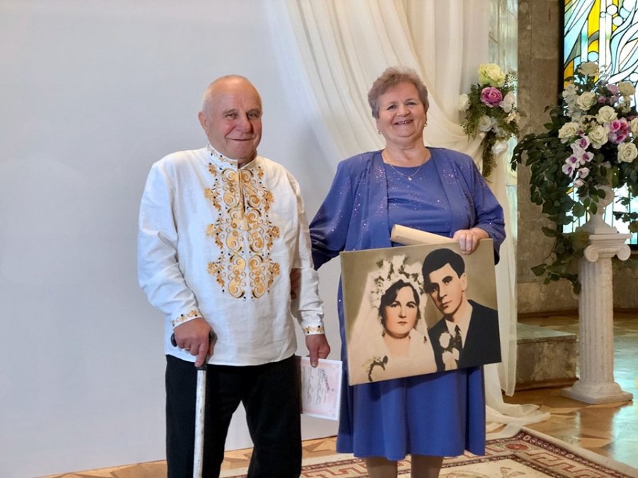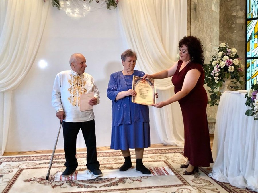 Нехай на їхньому шляху буде все тільки хороше: квіти, сонце і безхмарна блакить неба. А весільний рушник, який простелили ювілярам діти, нехай стелиться щасливою дорогою ще на багато-багото років подружнього життя", - йдеться у повідомленні.