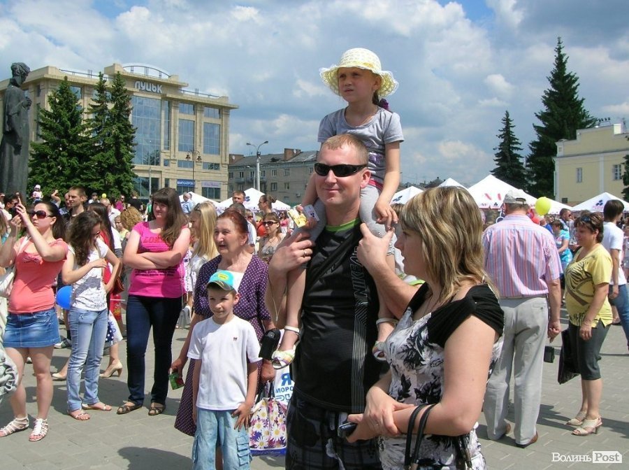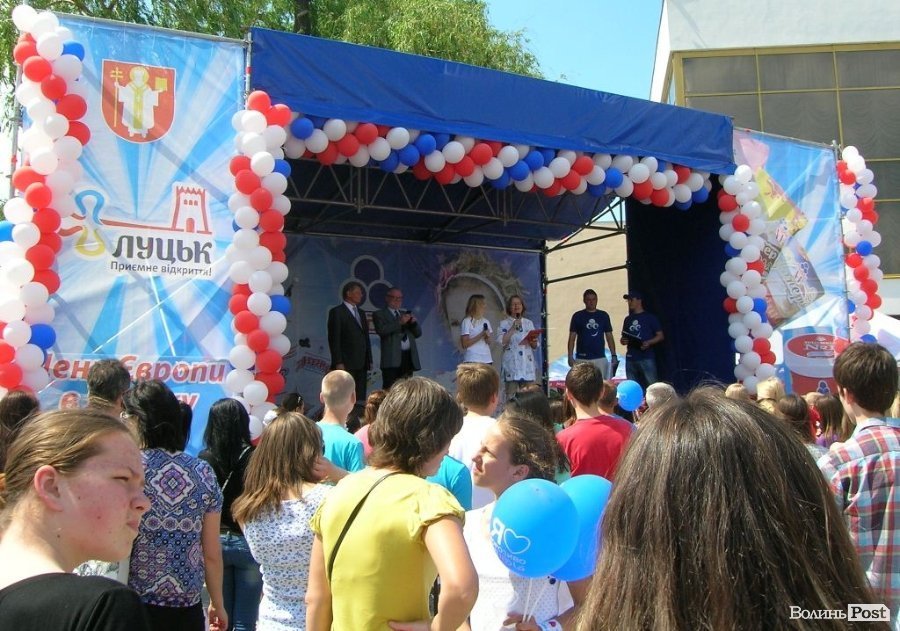 Людей на свято зібралося дуже багато, бо, окрім Дня Європи, в центрі Луцька відбувалося свято морозива від торгової марки «Рудь».