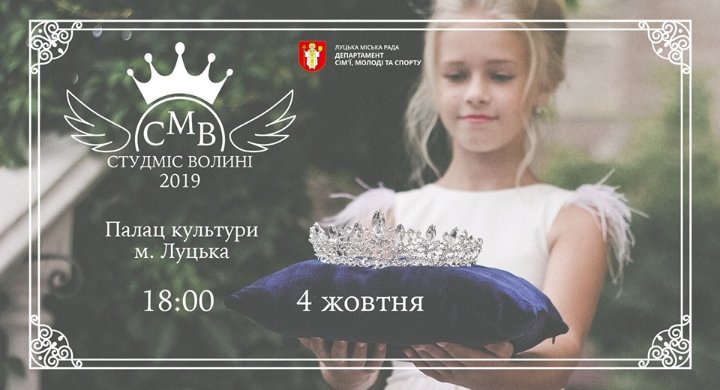 Що обіцяють: 4 жовтня о 18:00 у Палаці культури м. Луцька за підтримки Департамент сім'ї, молоді та спорту Луцької міської ради 7 дівчат з університетів та коледжів позмагаються за головну корону серед студенток – «СтудМіс Волині»