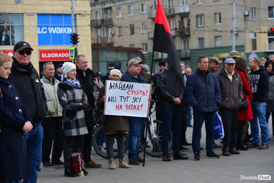 Під час протесту вимагали зібрати позачергові сесії міської і обласної рад, аби депутати ухвалили звернення до вищих органів влади стосовно непогодження із «формулою Штайнмаєра».