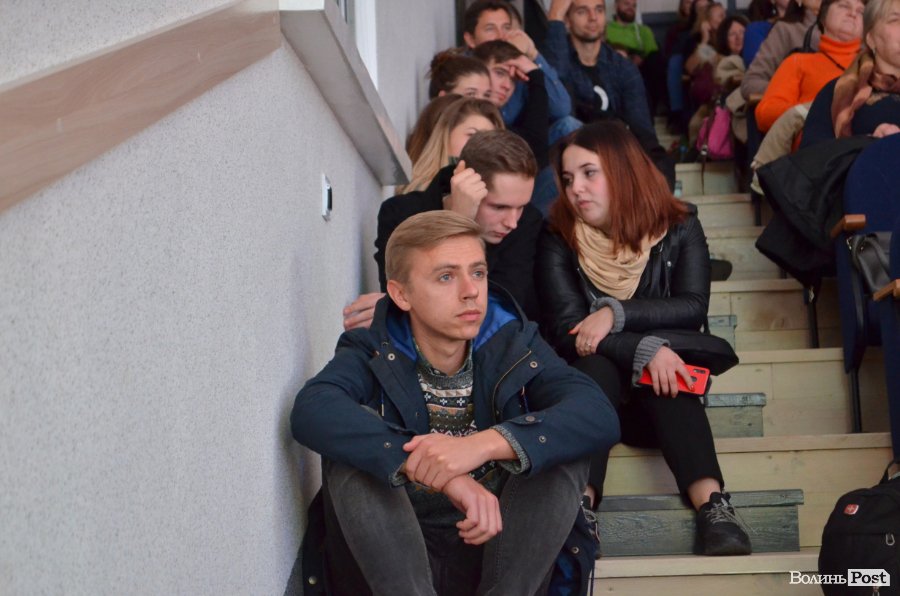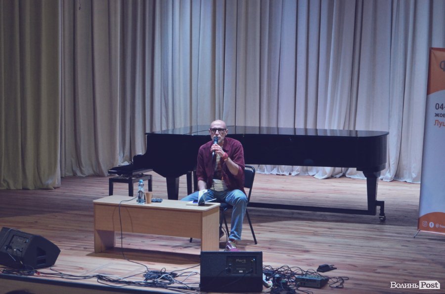 Спілкування з гостями заходу Юрій Іздрик розпочав не з «меланхолійних віршів», як написано у програмці, а з розповіді про те, як він не любив Луцьк...
