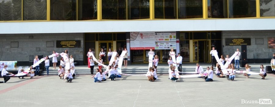 Для побудови назви «Луцьк» знадобилося близько 30 рушників. Їх тривала у руках молодь у вишиванках.