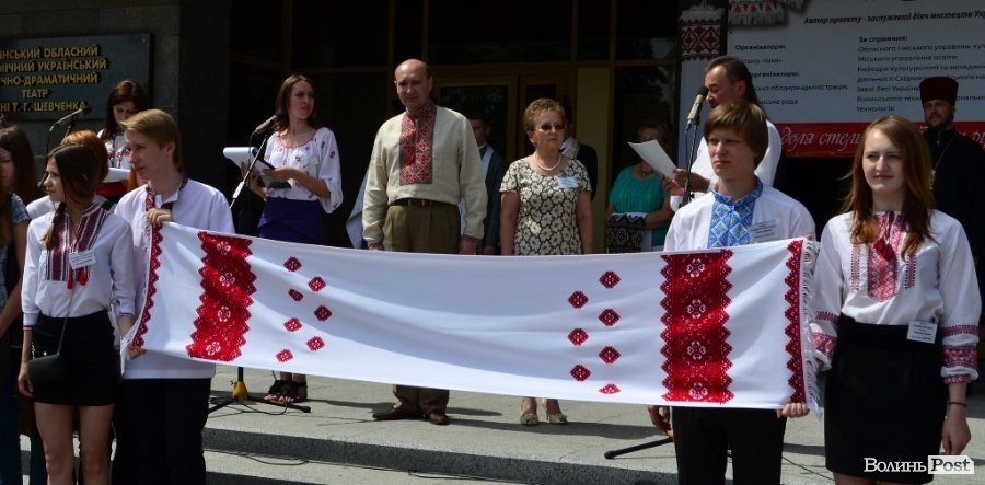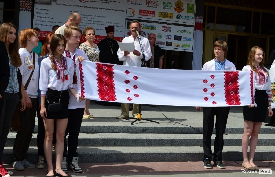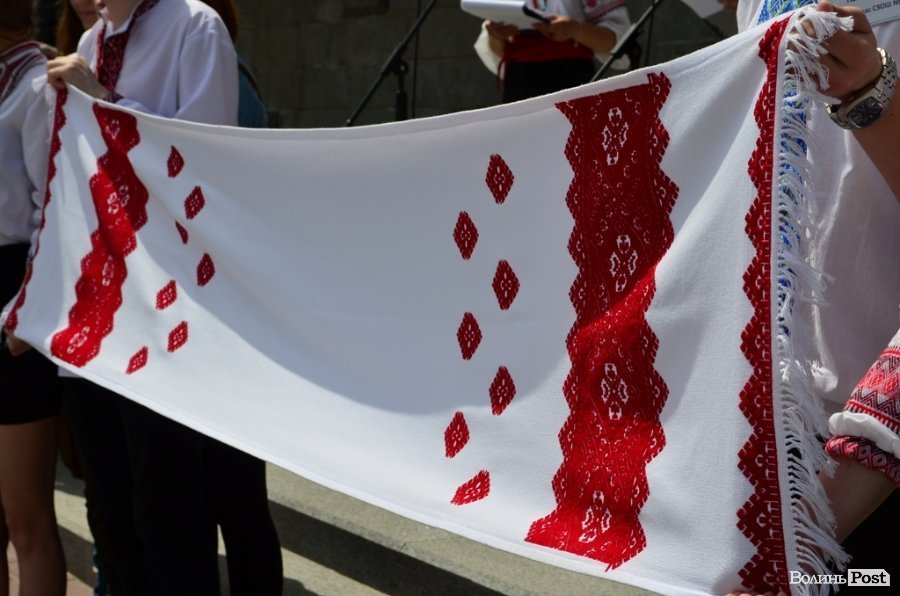 Диплом книги рекордів України вручили вихованцям ЗОШ №5 Луцька, які спільно вишили «рушник об’єднання нації».