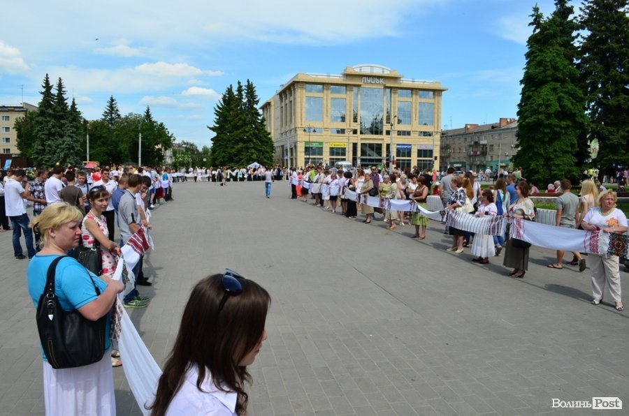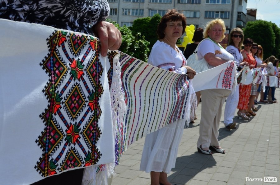 Довжина «рушника єднання» на фестивалі «Вишиті обереги єднання» у Луцьку 19 травня склала 630 метрів, що на тисячу метрів менше, аніж рекордна,встановлена на таких же заходах у минулі роки.