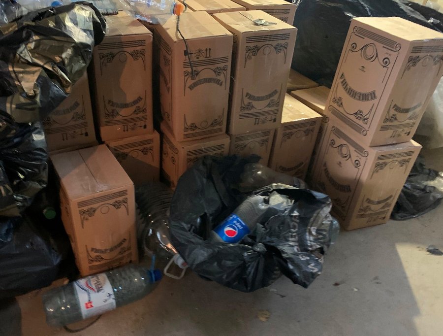 В результаті у нього вилучили 760 літрів рідини з характерним запахом спирту, понад 650 літрів готової горілчаної продукції, розлитої в тару «Bag in box», понад 400 пачок тютюнових виробів без марок акцизного податку встановленого зразка, пластикову тару, шланги, лійки, спиртометри.