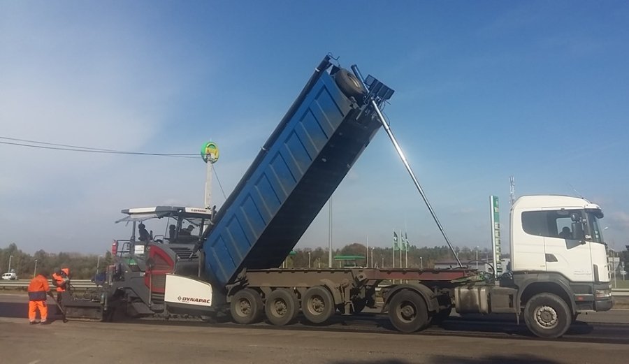 Дорожня техніка працює на найбільш ураженій колійністю, тріщинами та іншими деформаціями ділянці правої смуги правого проїзду в районі Цуманського перехрестя (км 127+700 – км 128+100). Сьогодні на відфрезерованих ділянках дороги підрядне підприємство ПП "Транс-дор-Сервіс" укладає гарячу асфальтобетонну суміш.