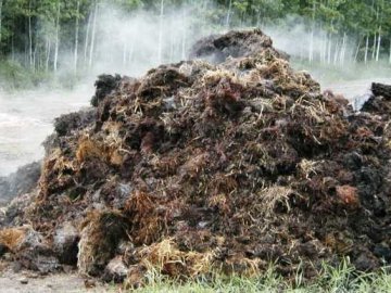 Складувати органіку вирішили на колишньому господарському дворі. Свого часу тут була лікарня, затим — приміщення спортивного товариства, а насамкінець — свинарник. Нині на цьому місці поміж величезними чагарниками — купи сміття та ще фундаменти давніх споруд. Поруч із цими кущами й почали вивантажувати гній.