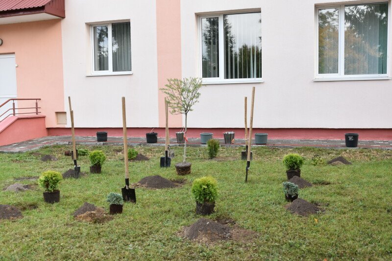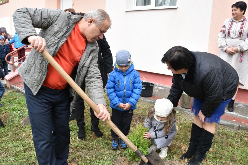 Потому дошкільнята разом із гостями та вихователями розпочали посадку нових дерев. На території дитсадка висадили молоді саджанці туї та верби.