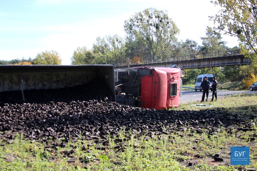 На Волині перекинулася вантажівка з торфобрикетом. ФОТО