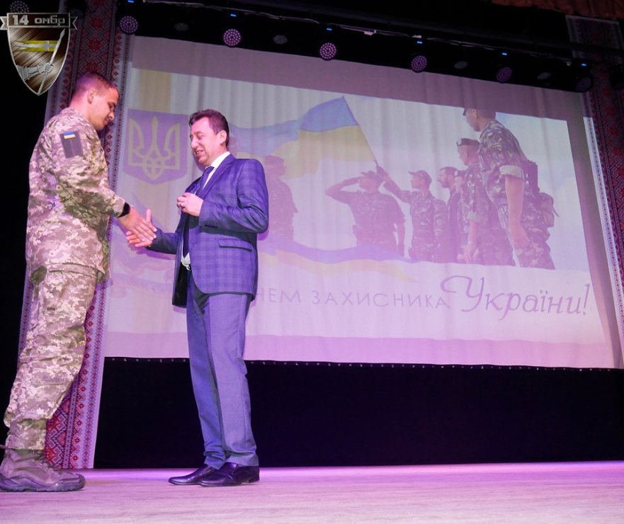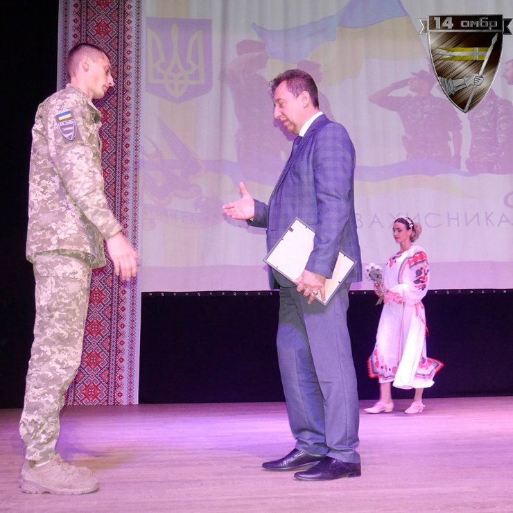 "Напередодні Дня Захисника України військовослужбовці нашої народженої та загартованої в боях 14 окремої механізованої бригади, яка виконує завдання за призначенням на Луганщині, отримали відзнаки Луганської цивільно-військової адміністрації – Знаки пошани «Захисник Луганщини», подяки та грамоти.
