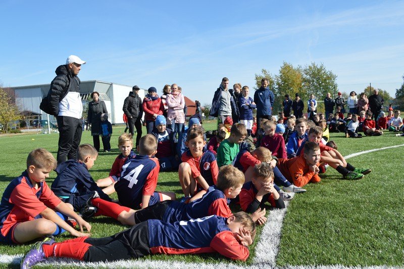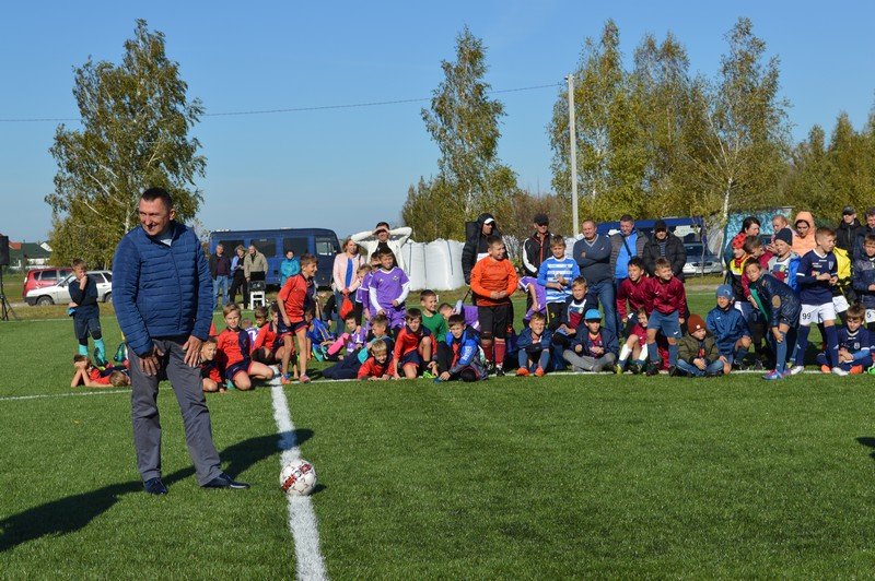 А на новому газоні, аби послухати дорослих, зручно розмістилась майбутні Шевченки, Марадони та Мессі, завітало чимало й батьків юних футболістів.