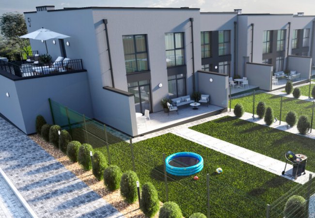 У Будівельній компанії «Інвестор» показали можливий дизайн майбутніх двориків у таунхаусах.
