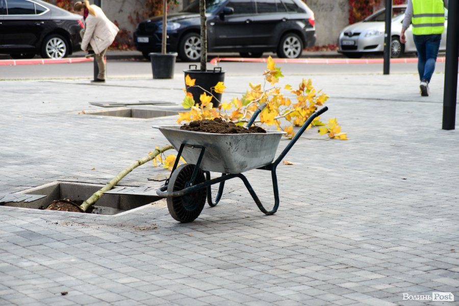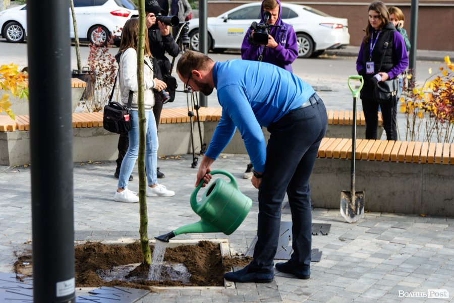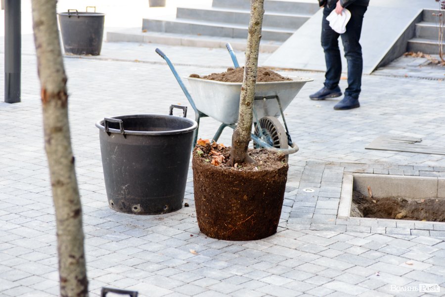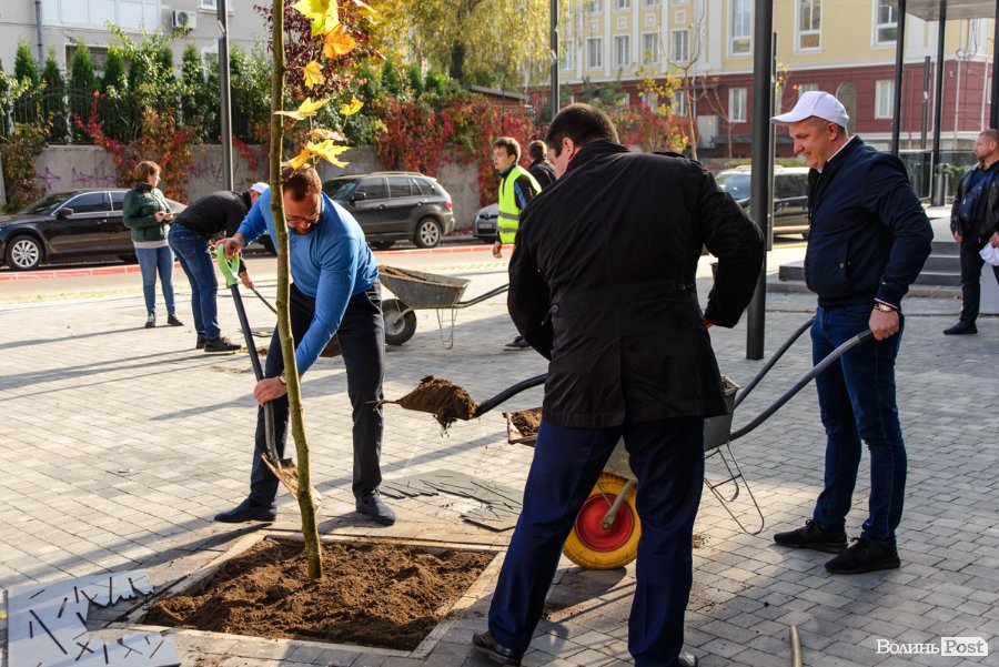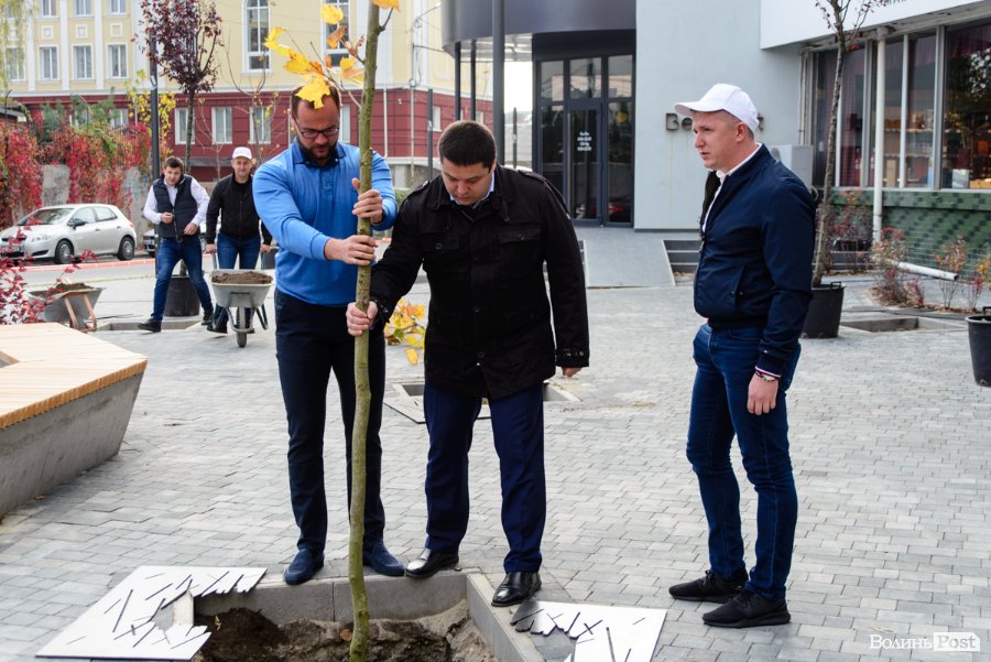 Сучасний оазис посеред міста: у новому сквері в центрі Луцька висадили клени та сливи