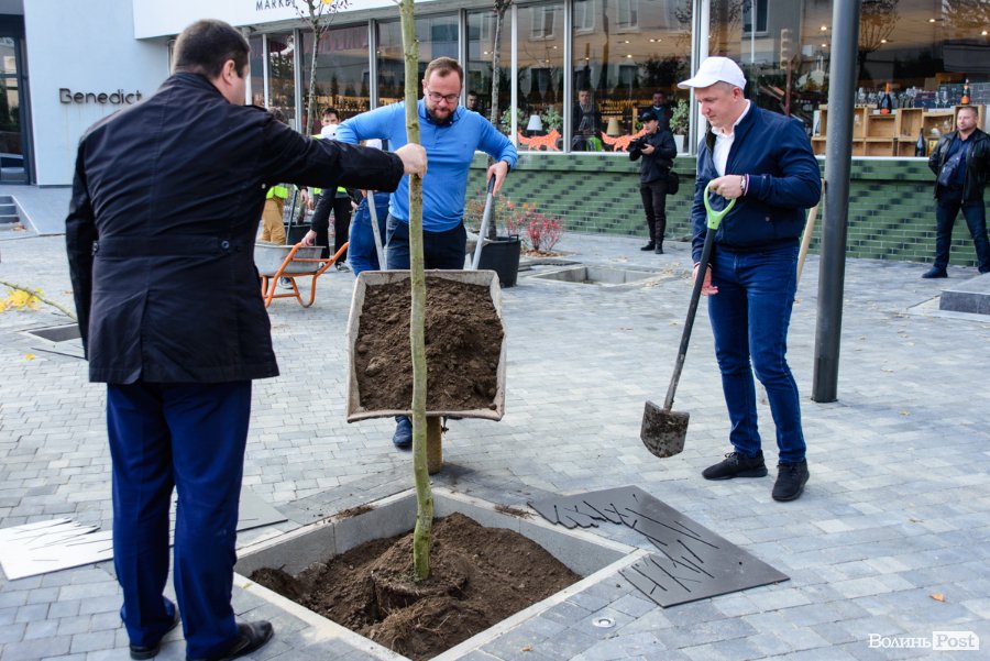 Так, 16 жовтня на території нової привабливої локації у центрі міста, що поблизу кафе «Вenedict», висадили 16 п’ятиметрових кленів і слив та близько 40 декоративних кущів.