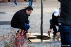 Олексій із донькою Яриною, які проходили повз, також із цікавістю спостерігали за процесом висаджування дерев. «Доньці тут подобається. Ще як не було дерев, то ми сюди на лавочках приходили посидіти, бо ж в центрі так то й немає де. А тепер тут ще й зелена територія. Гарно зробили», – каже Олексій.
